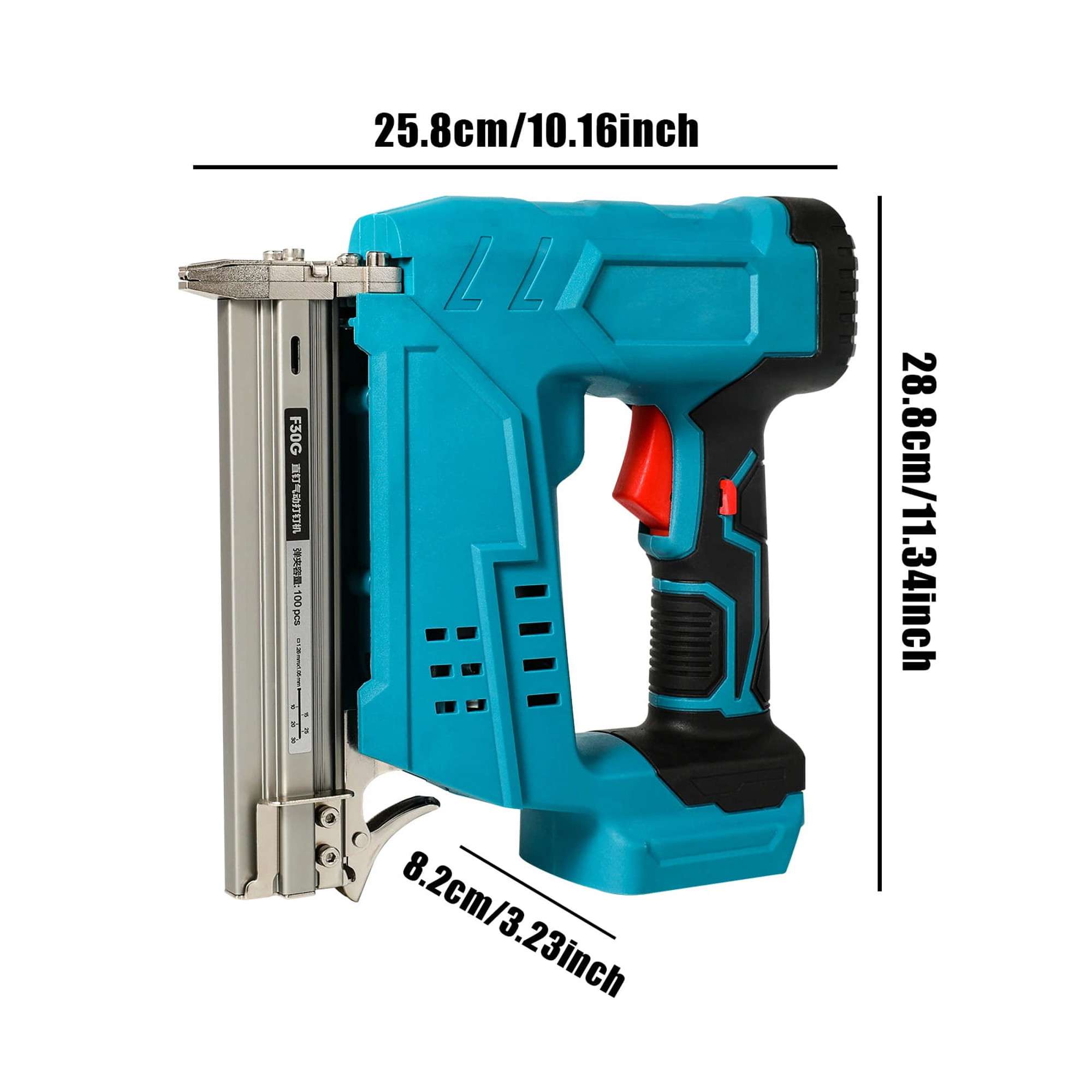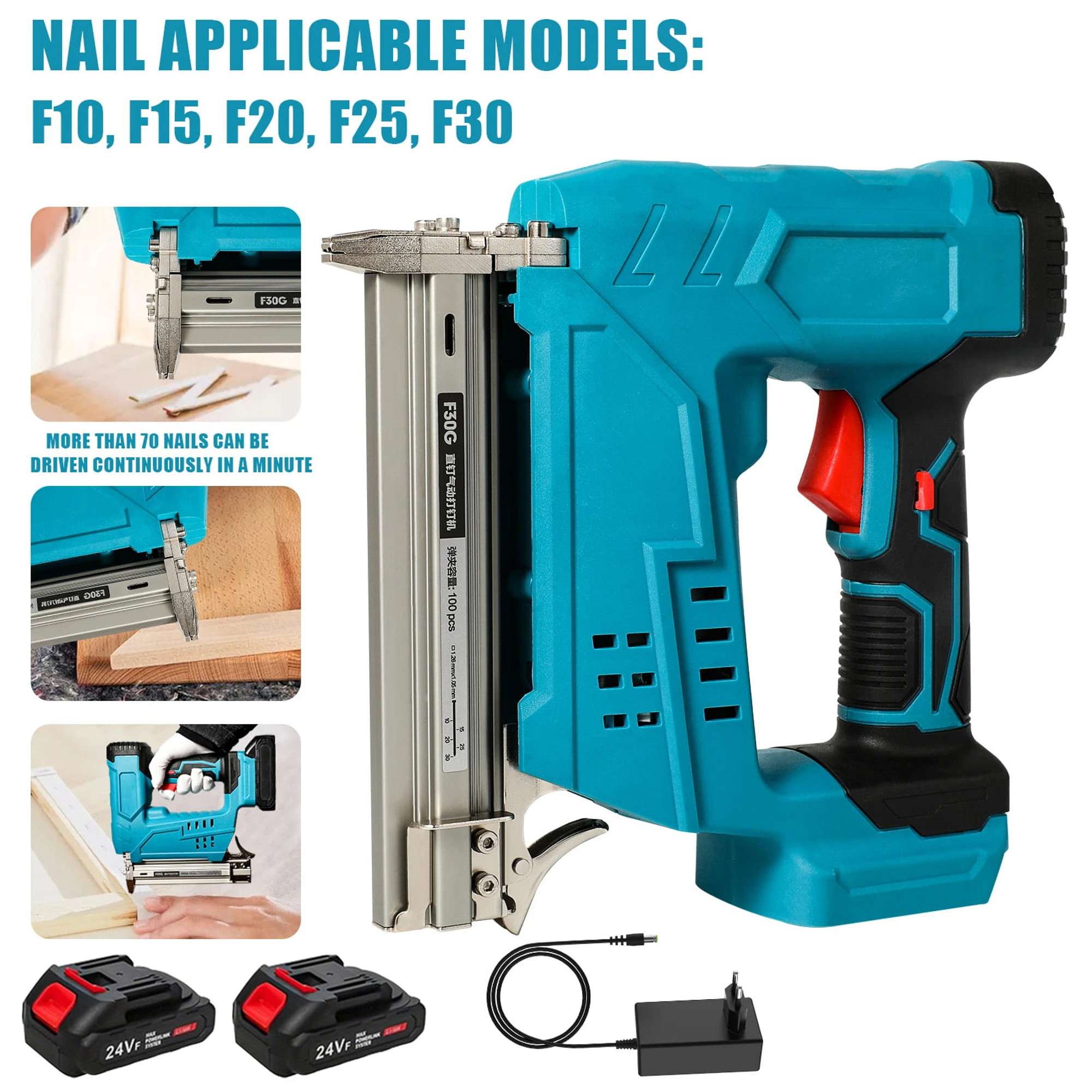 Ovaj aku pištolj služi za snažno zabijanje čavala. Ima brzo kontinuirano pucanje, bez zaglavljivanja čavala, bez izbočenih čavala, sigurno bez potrebe za zračnom pumpom. Mlaznica pištolja je od legiranog čelika visoke čvrstoće.