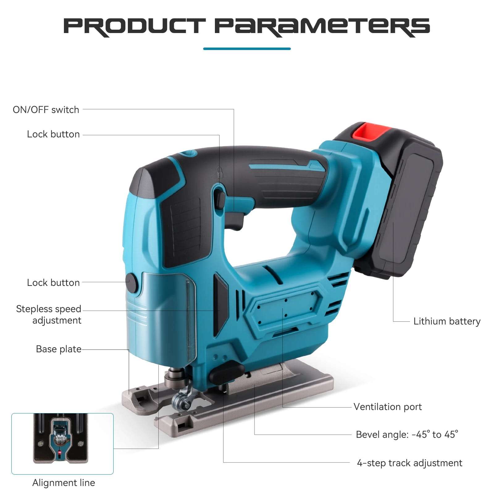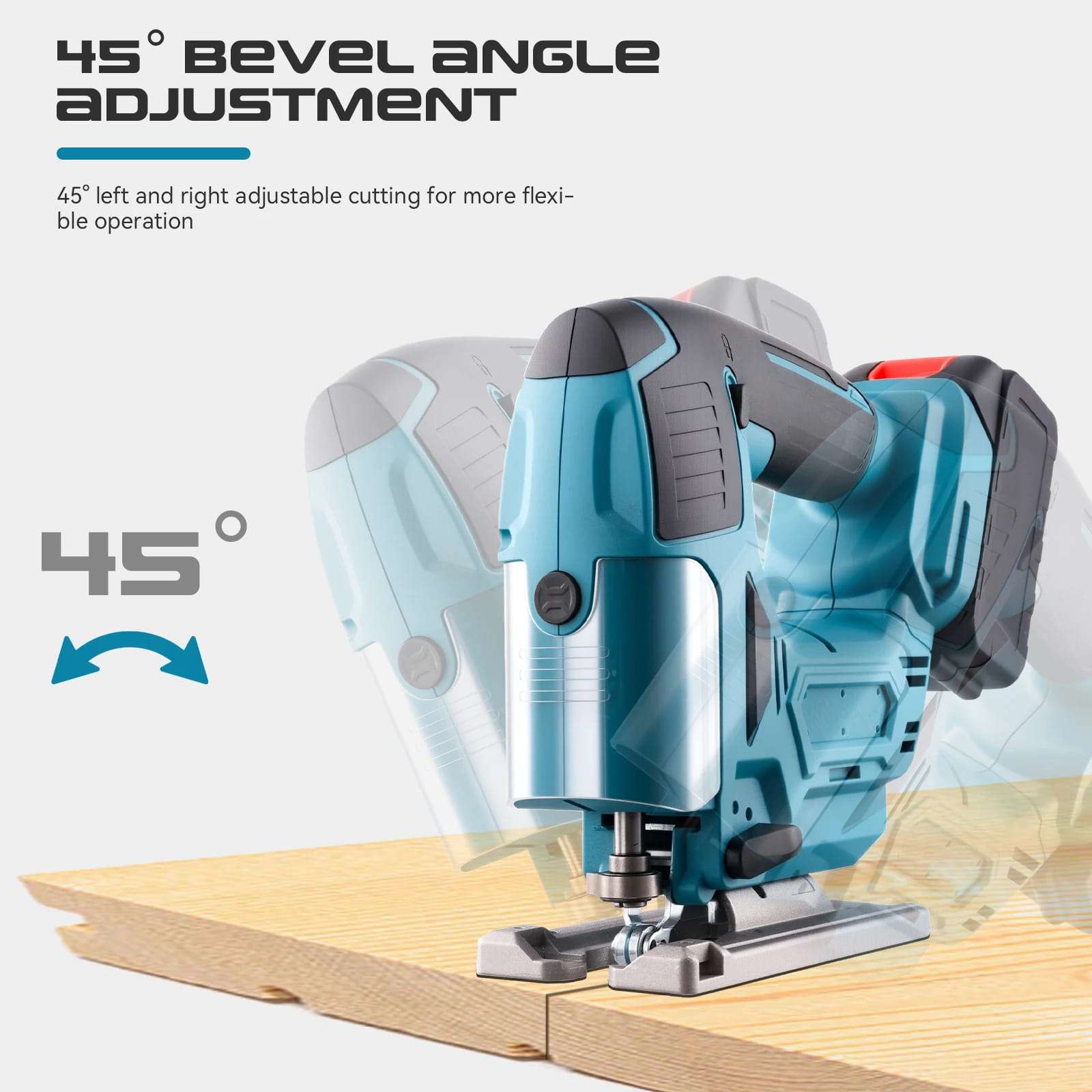 Omogućuje podešavanje različitih kutova rezanja, maksimalni podesivi kut rezanja je od -45° do 45°, tako da možete izrađivati ravne, zakrivljene i kose rezove, kao i bušiti rupe. Zadovoljava različite DIY potrebe.
